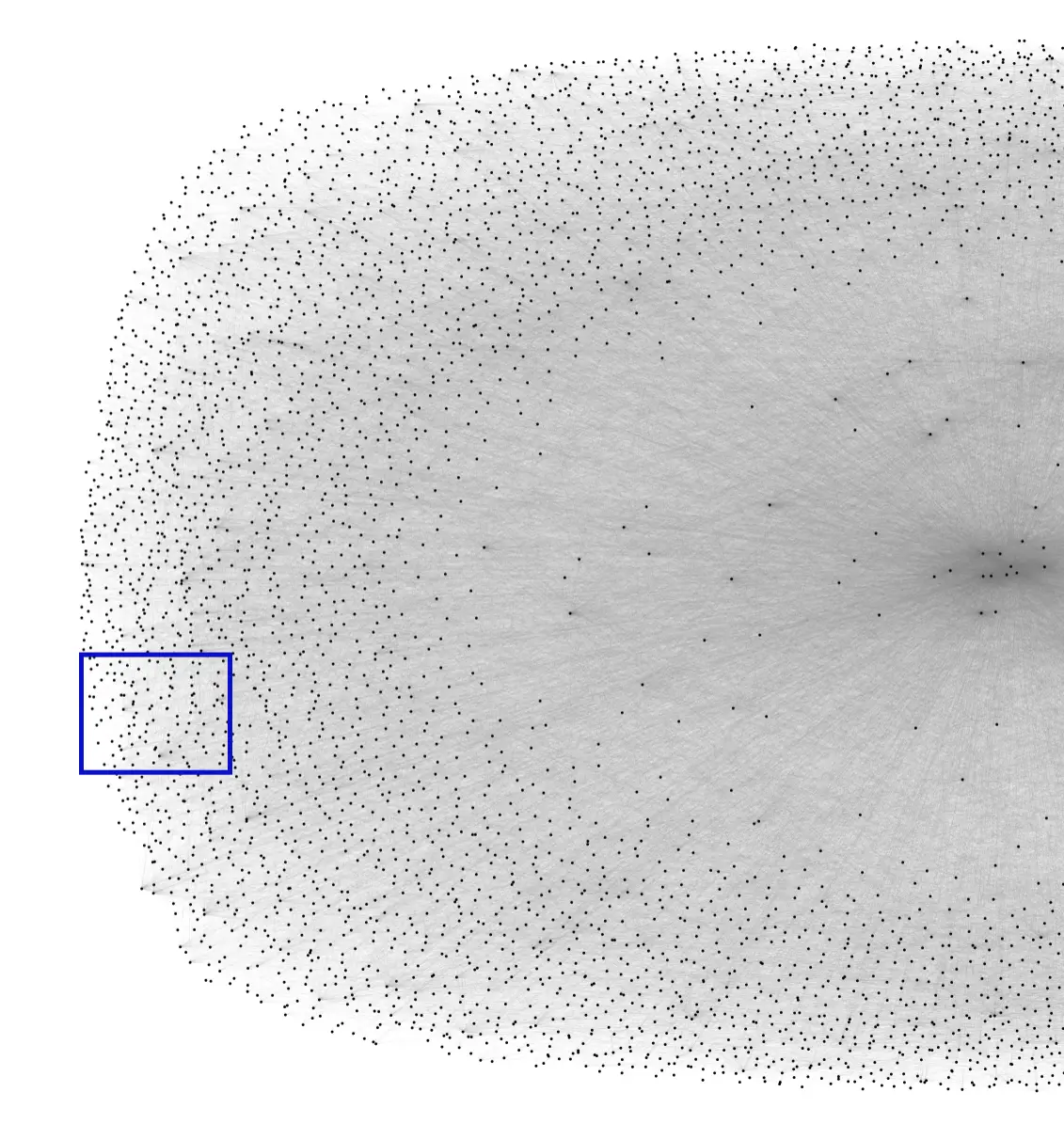 Here, now we can see the black dots. Each black dot is a public node. The lines are the public channels, connecting the nodes: